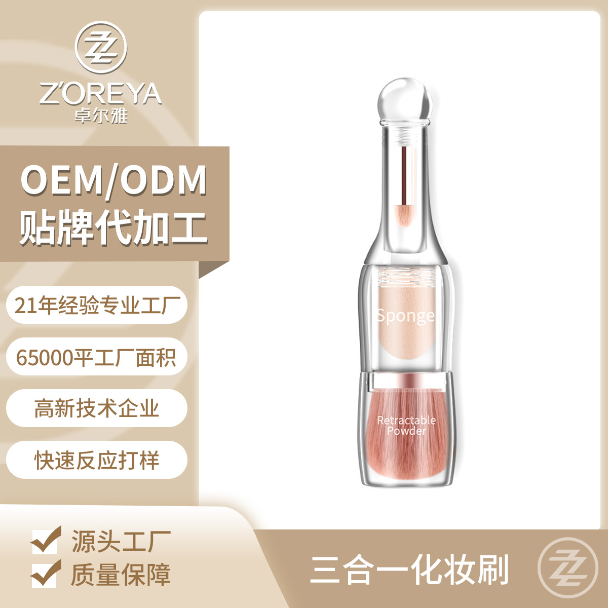 加工カスタム三合一化粧ブラシ美化粧ツールカバー付き防塵パフカバー付きファンデーションリップブラシ印刷ロゴ