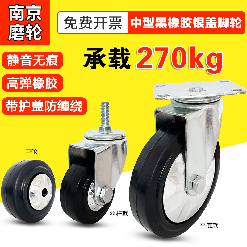 重さ4インチ3インチ5インチ弾力静音ゴム輪カバー付き黒万能輪ブレーキキャスター固定