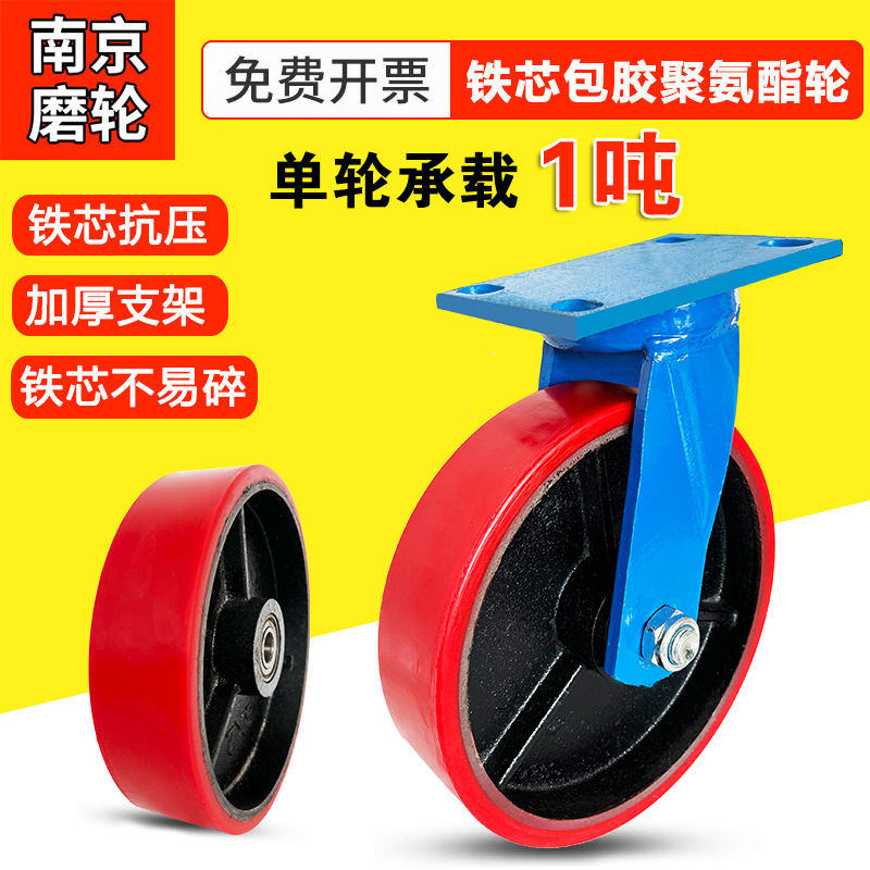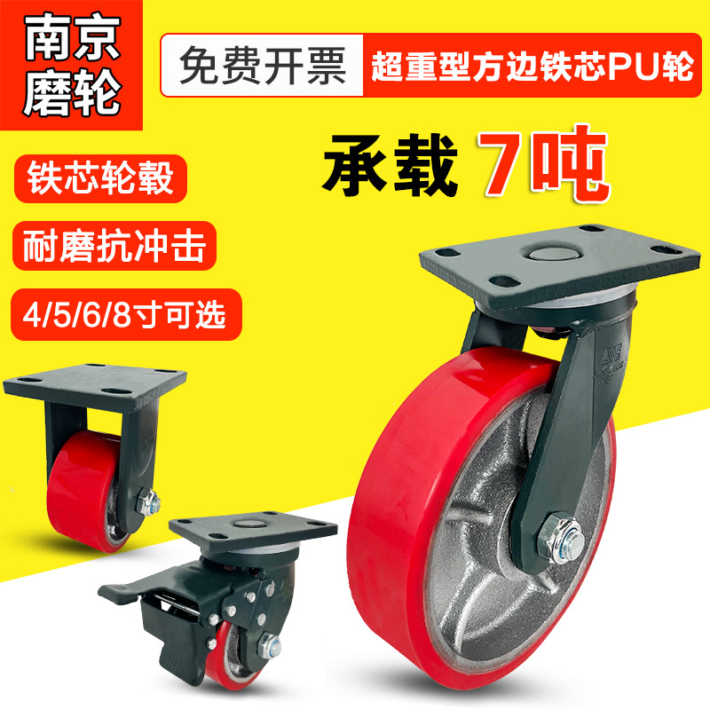 ユニバーサルホイール重型7トン鋳鉄芯PU耐摩耗荷重4/5/6/8インチ龍門架工業超重型キャスター