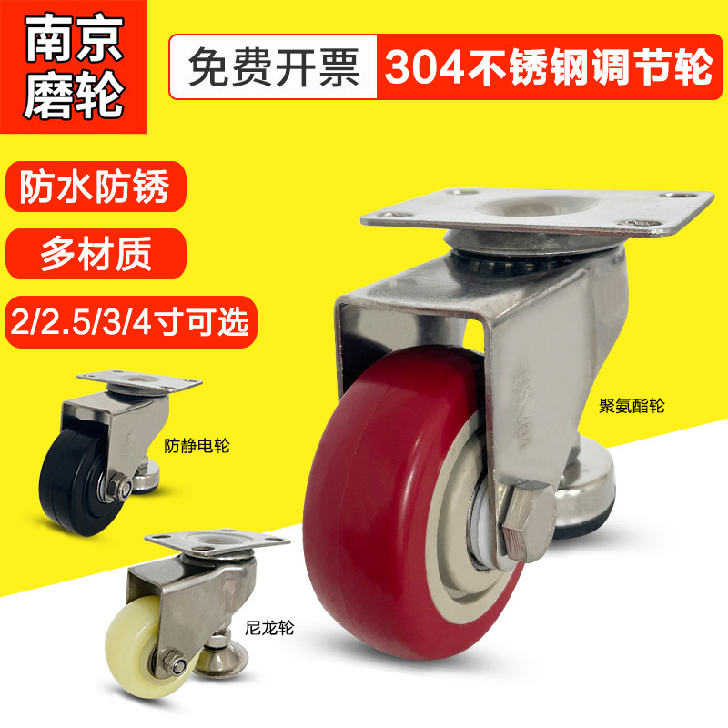 ステンレス調整輪2/3/4インチ自在輪ナイロン静音重帯支持足カップポリウレタン設備