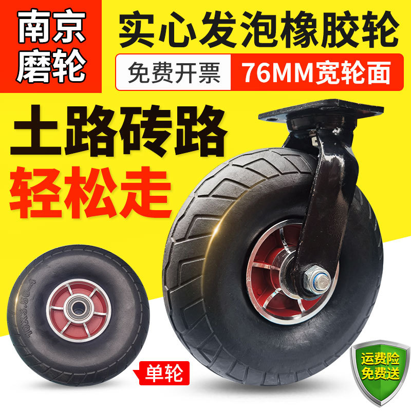 南京研削輪アルミ芯ゴム輪10インチ静音万能輪車トレーラー車輪土路車輪は空気を入れない