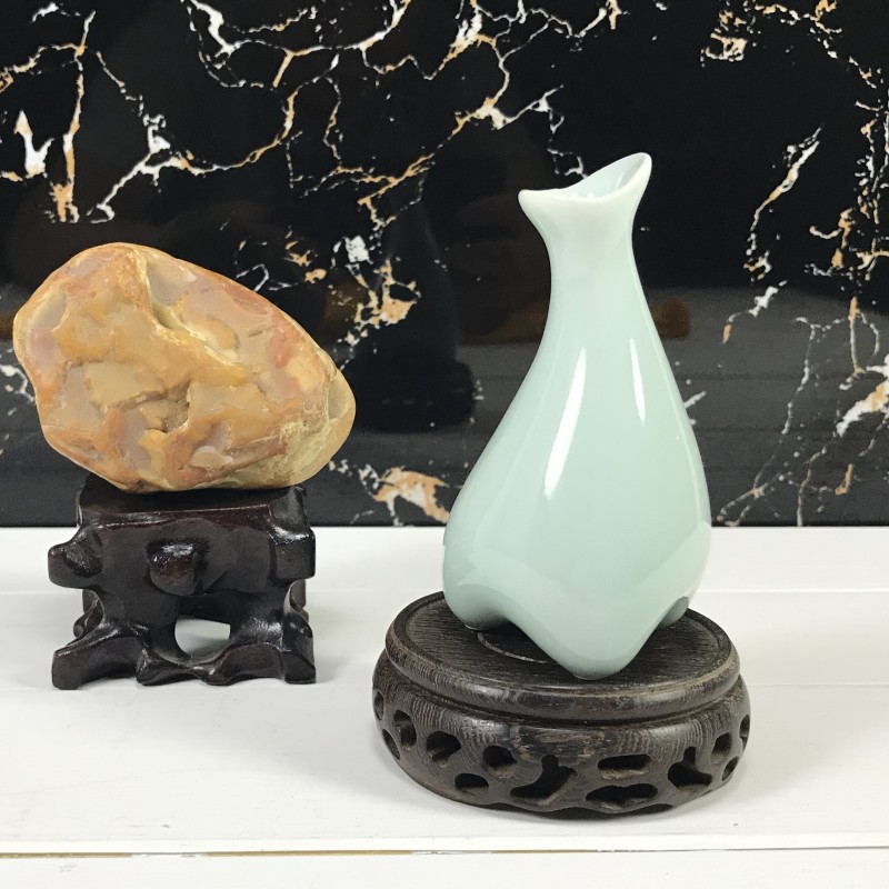 竜泉青磁の創意の小さい花器の陶磁器の3足の花瓶の水培のデスクトップの展示棚の装飾の置物は代行します。