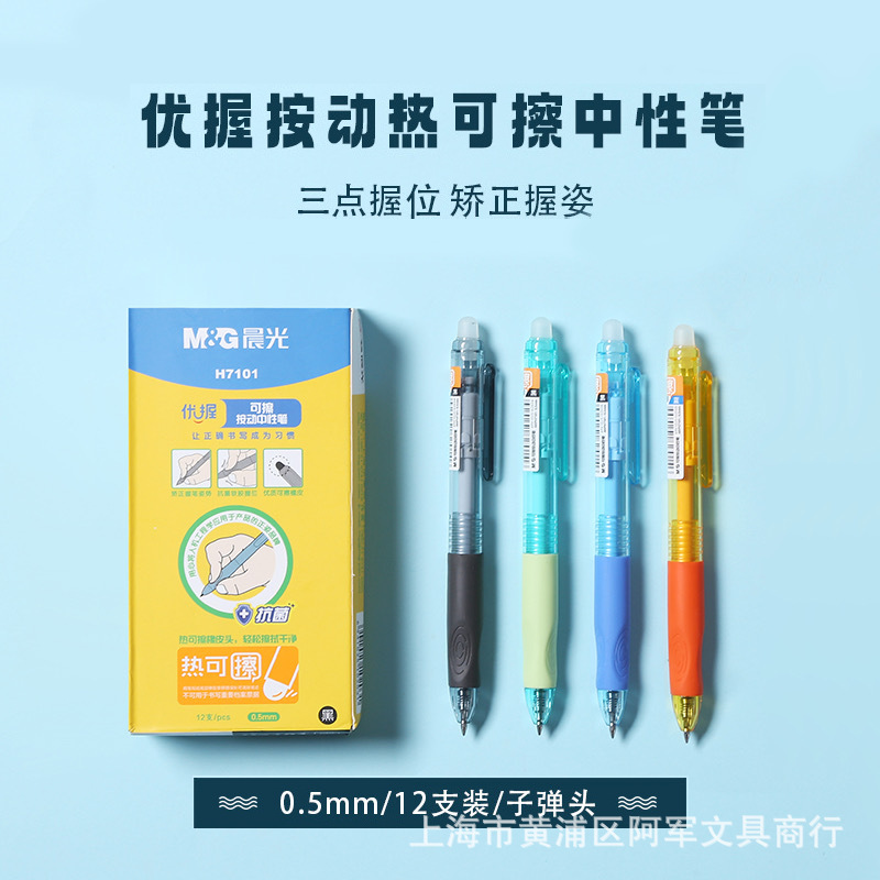 朝の光の優はh7101を握って押して中性のペンの0.5mmの熱を拭くことができます。