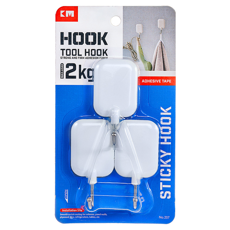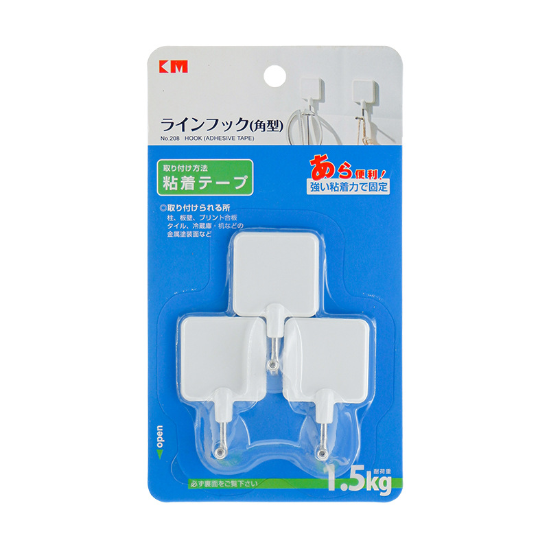Km 208正方形フック家庭用強力粘着フックキッチン穴なし粘着フック3pcs