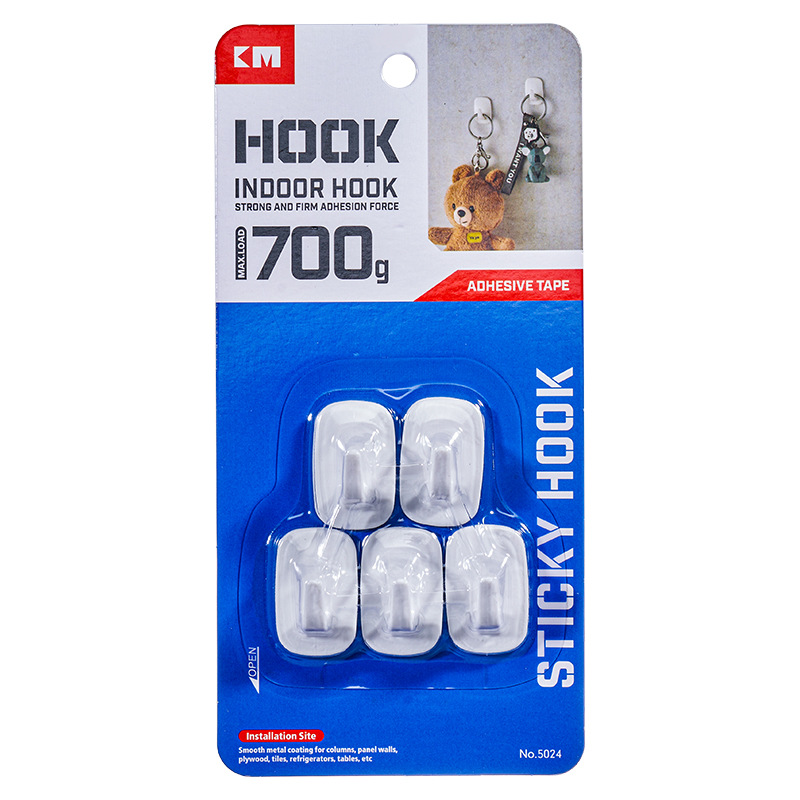 Km 5024シンプルな小さなフック付きフック強力な貼り付けフック穴なしキッチン壁フック5pc