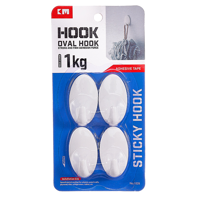 Km 1028トランペット粘着フック楕円形粘着フック粘着テープフック服フック4個入り