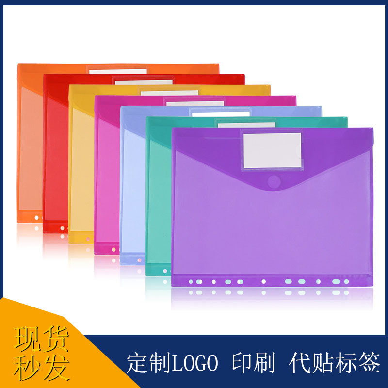 A4スナップボタンファイルバッグ11穴ラベル付きPP透明防水ファイルバッグオフィス資料ファイルフォルダ収納バッグ