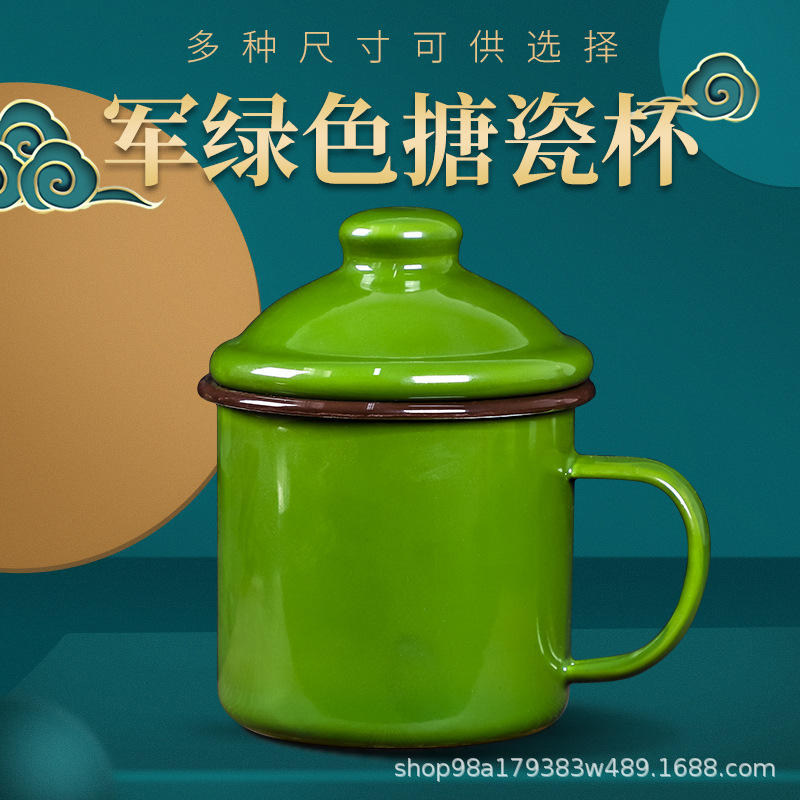 エナメルマグカップ軍緑レトロ古い蓋付きカップレトロコップ軍緑カップビール鉄カップ