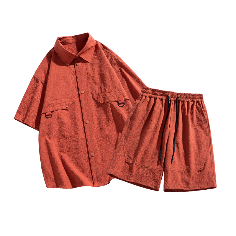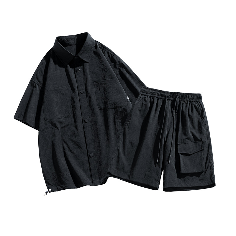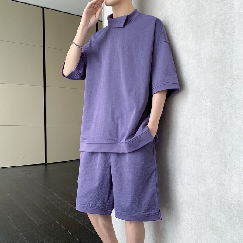 プルオーバー Tシャツ 半袖 ショートパンツ スーツ メンズ 夏 トレンド ブランド 薄手 速乾 ドレープ ワークウェア カジュアル 2点セット