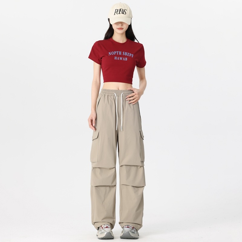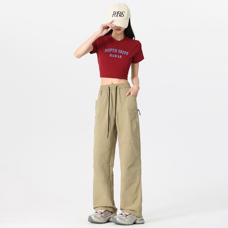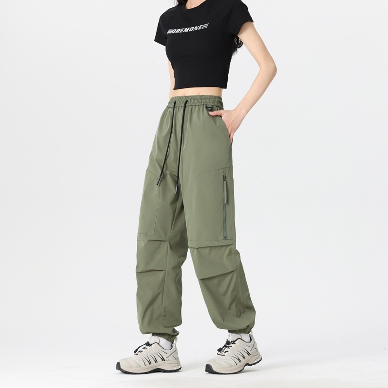 女性モデル用オーバーオール夏薄手2025新作ルーズストレートアサルトパンツ防水スポーツカジュアルロングパンツ