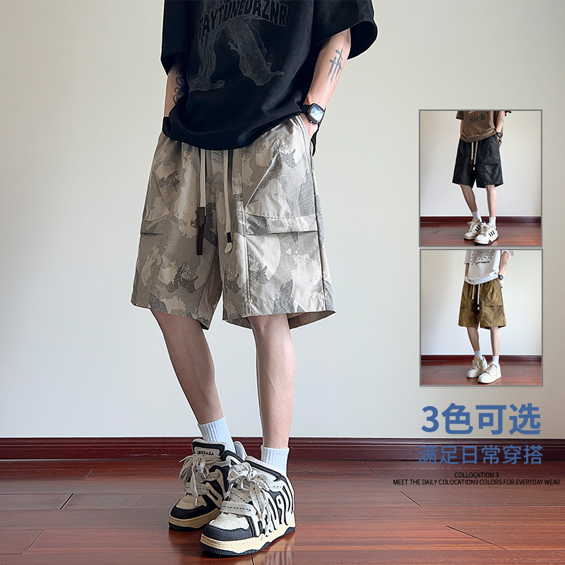 作業服迷彩ショーツメンズ 2025 夏の新カジュアルメンズ 5 点パンツルーズトレンド供給ランニングパンツ