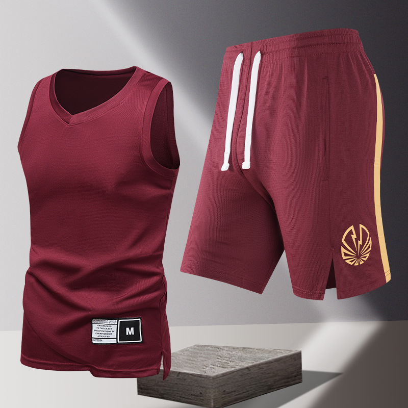 国境を越えた新製品欧米レジャースポーツ夏パンツベストtシャツセット男性ランニングフィットネス速乾ゆるい