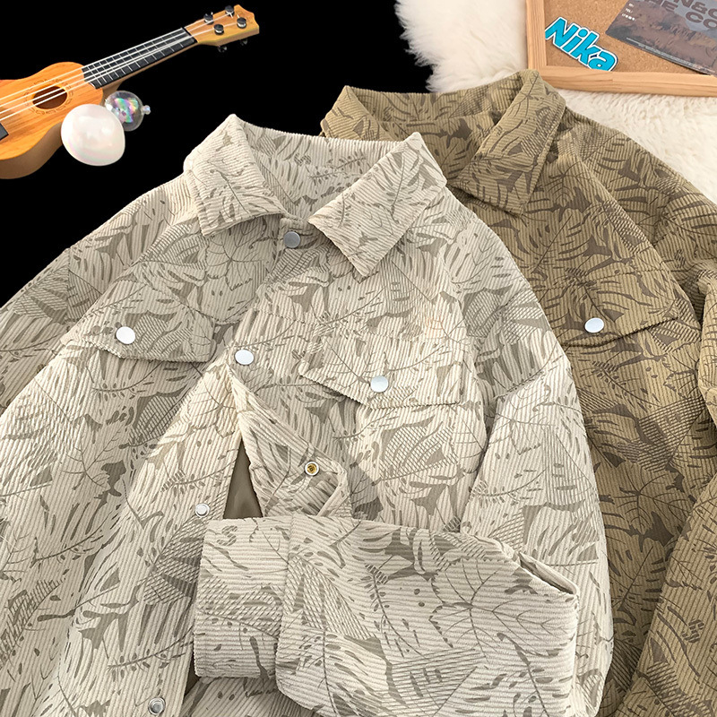 2025新型コーデュロイ青年学生ジャケット男性モデル春秋襟迷彩カジュアルファッション格好いいコート