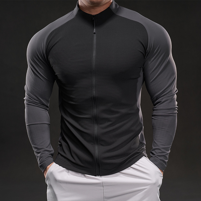 欧米の越境スタイル2025春の新商品の修身弾力長袖カーディガンtシャツトレーニング服レジャースポーツ男