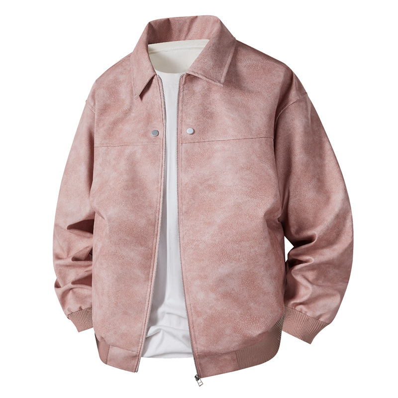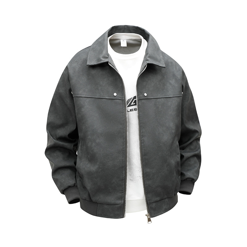2025年春秋の新型男性のファッションブランドは襟の皮の服の男性のファッションに合わせてゆったりしていてカジュアルでかっこいいコートです。