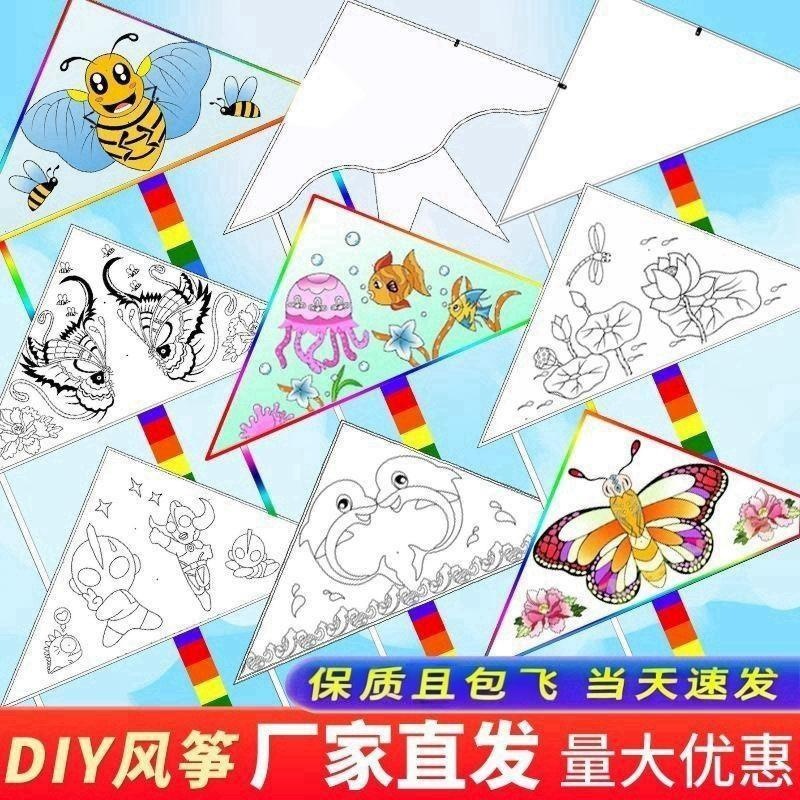 凧DIY素材パック 子供用手描き紙凧 無地絵付けぬりえ 幼稚園 自作 微風で飛ばしやすい 卸売