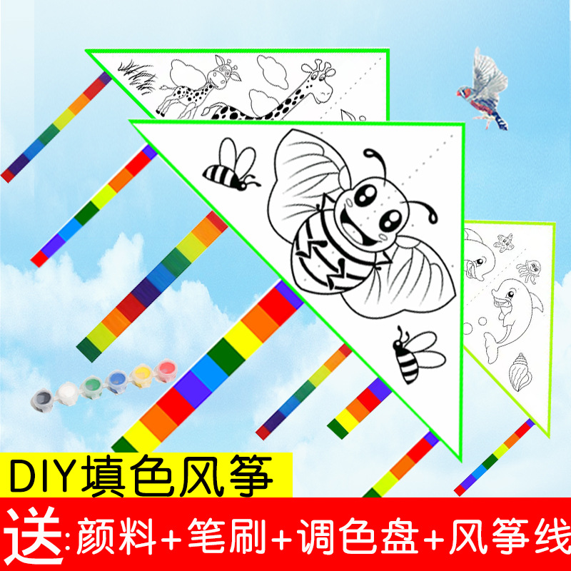 Diy凧の材料は子供の空白の絵を包んで落書きします。