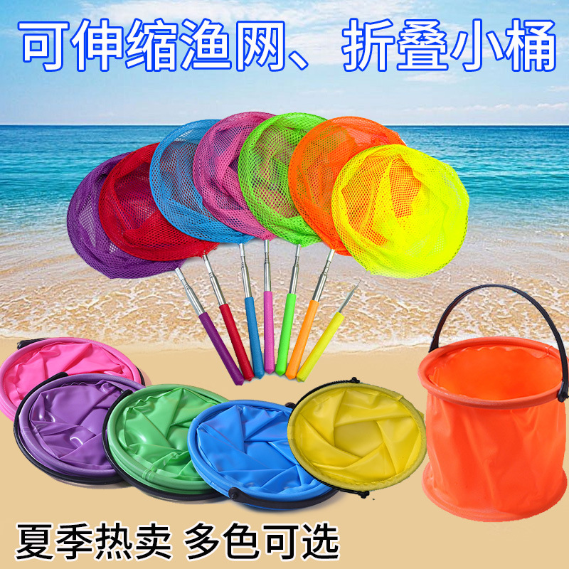 子供用伸縮網魚網ビーチ屋外水遊び網袋捕虫折り畳みバケツ携帯用露店卸売り