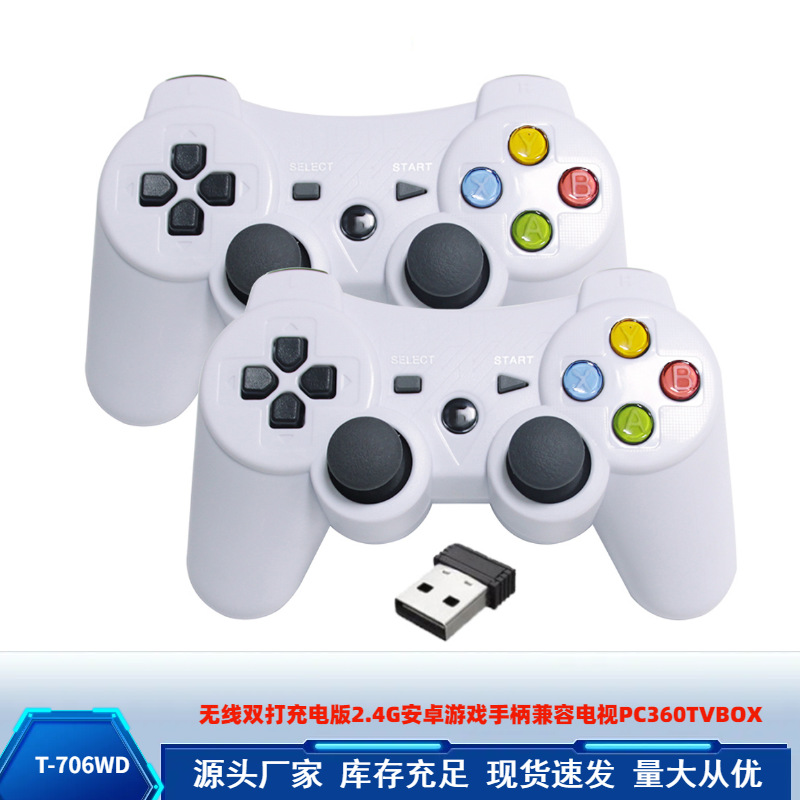 ワイヤレスダブルス充電版2.4gアンドロイドゲームハンドル一ドラッグ二人プレイ互換テレビpc360tvbox
