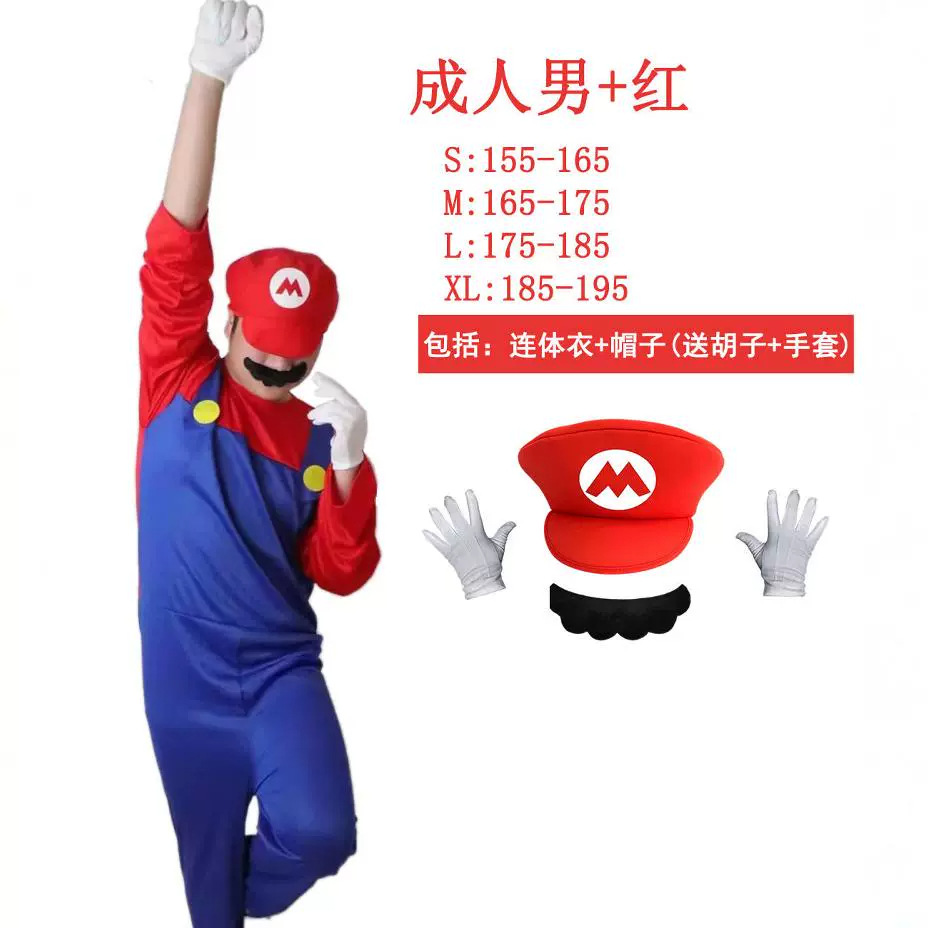 スーパーマリーマリオ男女成人児童ジャンプスーツ帽子アニメコスプレセット
