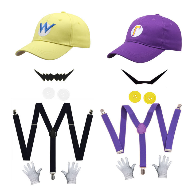 マリオキャスティング紫黄色子供大人カモ帽日よけ帽野球帽子ストラップセット