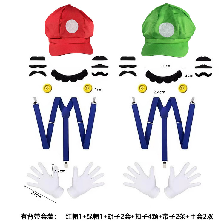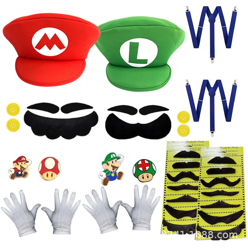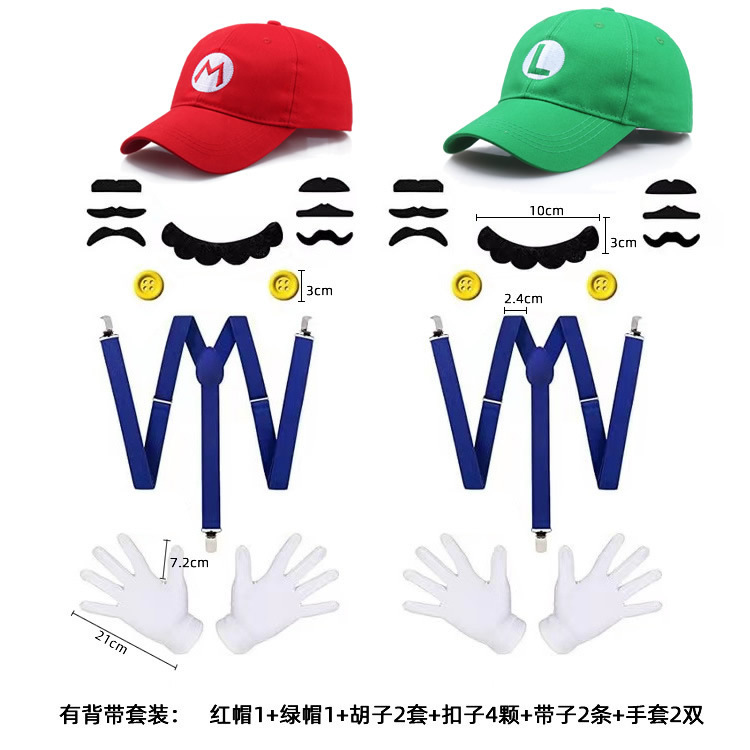 マリーマリオアニメキャラクターパフォーマンス帽子子供大人野球帽手袋ひげストラップブローチセット