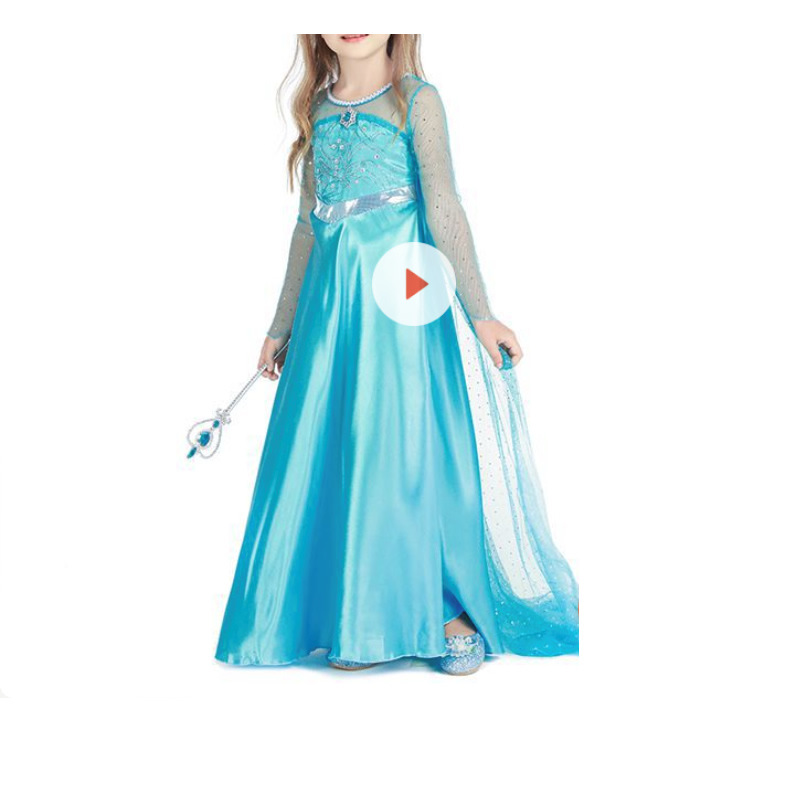 2023新型アナと雪の女王のスカートのfrozen王女のスカートのスパンコールの長袖の子供のスカートのクリスマスの祝日の元旦の公演のスカート