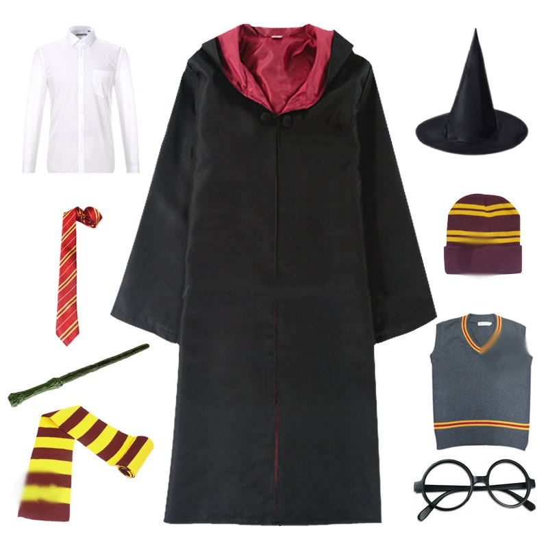 卸売りHP魔法ローブ魔法ローブ帽子マフラーセーターネクタイ眼鏡白シャツマジック棒セット