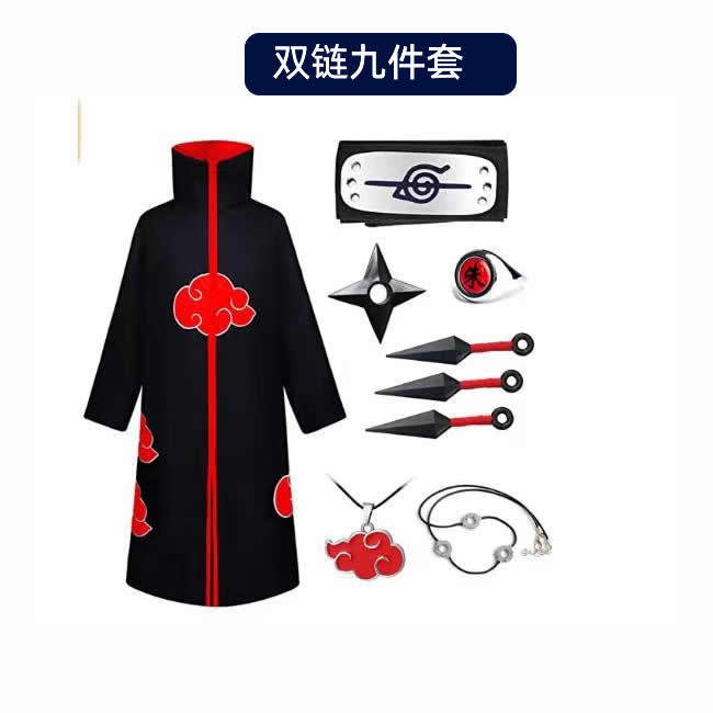 火の忍者暁組織マント宇智波イタチcos服双鎖双指輪九点セット写輪眼七点セット