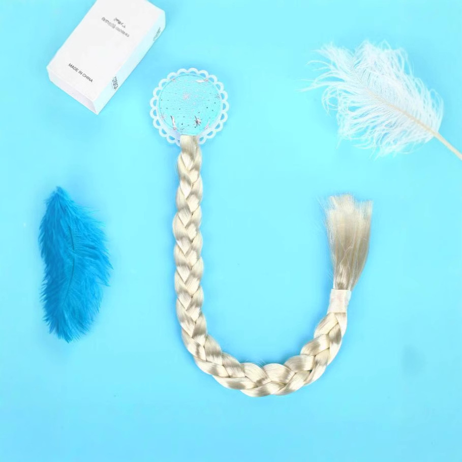 アナと雪の女王の子供の艾莎の王女のかつらは下げます。銀色の髪飾りの道具のかつらのポニーテールの手作りのお下げです。