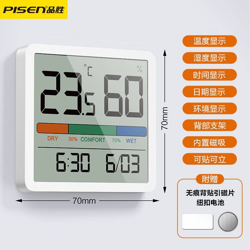 Pinsheng LCD 高精細スクリーン磁気屋内温湿度計バックディスプレイ内蔵磁気吸引家庭用高精度新モデル