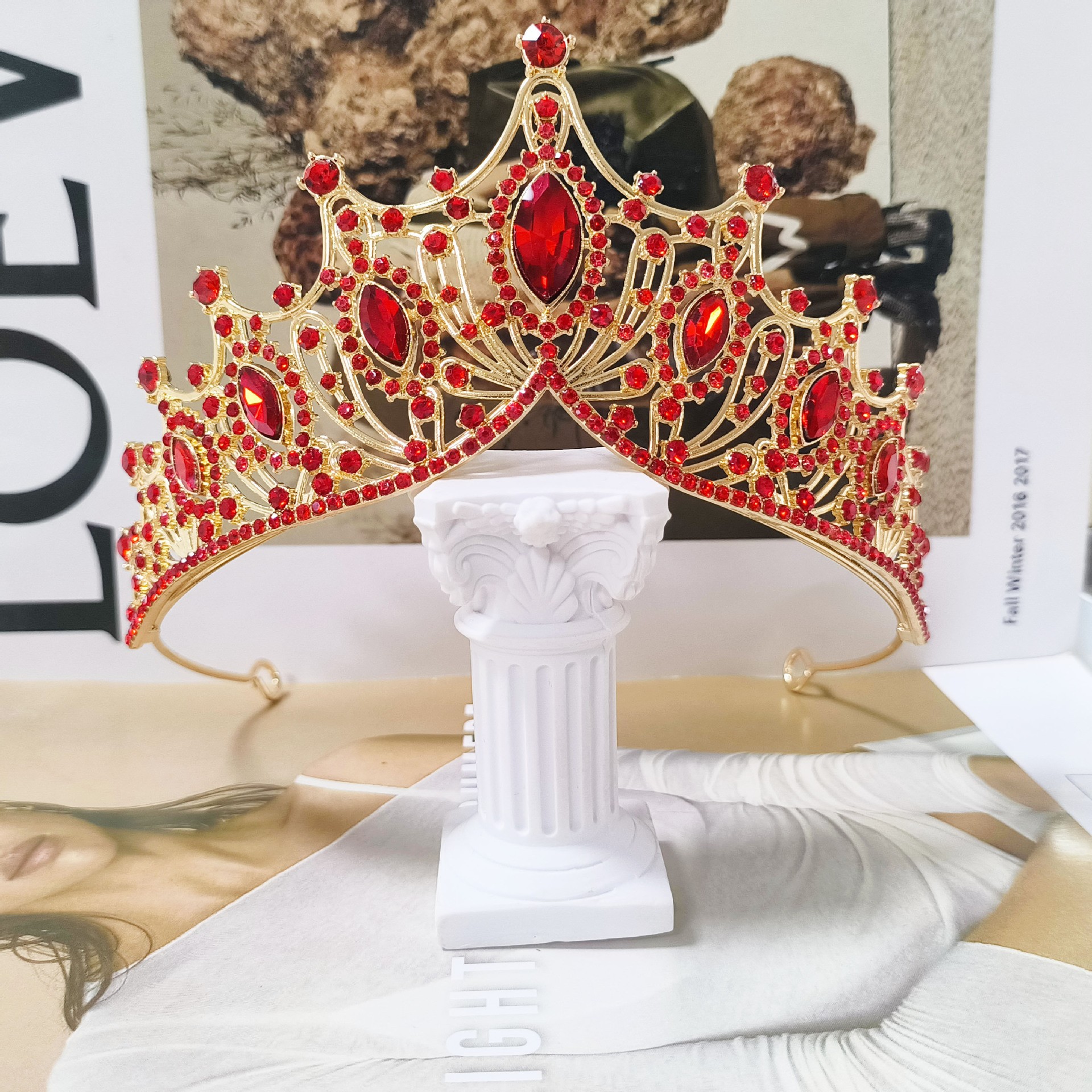 レトロなクロスボーダーバロック合金ラウンドクリスタルクイーンクラウン成人式プリンセスブライダルティアラ