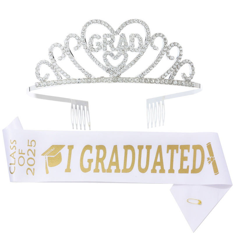 2025 卒業シーズン卒業生ショルダーストラップクラウンセット卒業プロムパーティーエチケットバンド GRAD ラインストーンヘッドバンド
