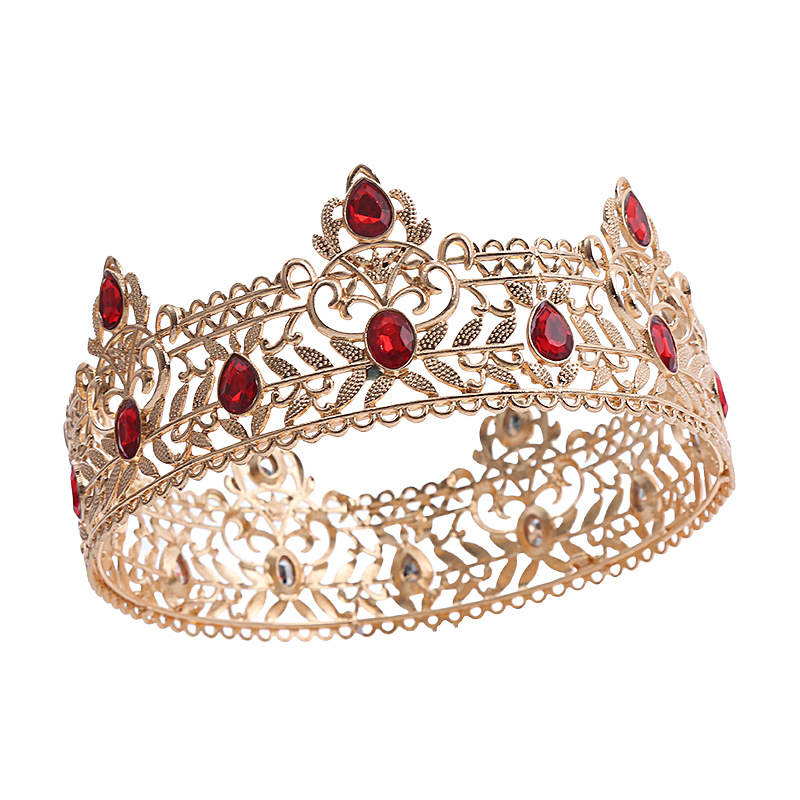 ヨーロッパとアメリカのクロスボーダー花嫁ラウンドクラウンクイーン合金ラインストーンバロッククラウン英国男性キングクラウン