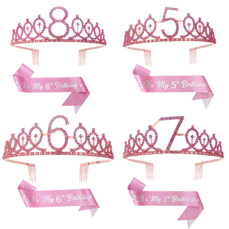 誕生日パーティー装飾合金フルダイヤモンドクラウンヘアバンドショルダーストラップ女の子用エチケットバンド王冠越境人気商品パーティー