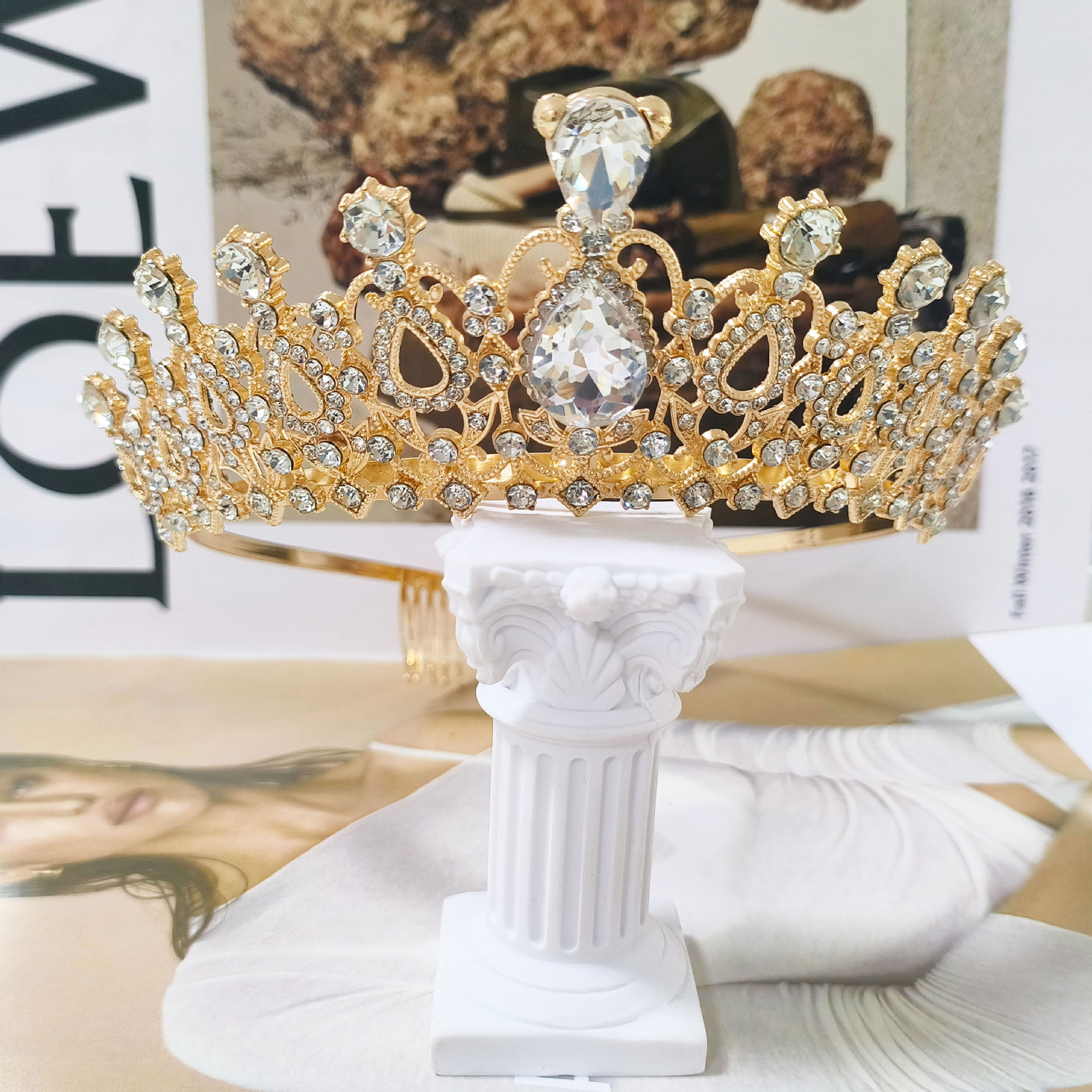 韓国風アマゾン水滴クラウン花嫁ウェディングドレスヘッドドレス誕生日プリンセス王冠宴会ドレスヘアアクセサリー豪華