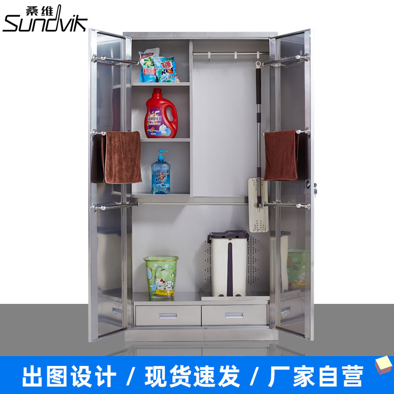鴻銘ステンレスクリーンキャビネット清潔ロッカー衛生工具キャビネットロック付き鋼製ほうき収納キャビネット