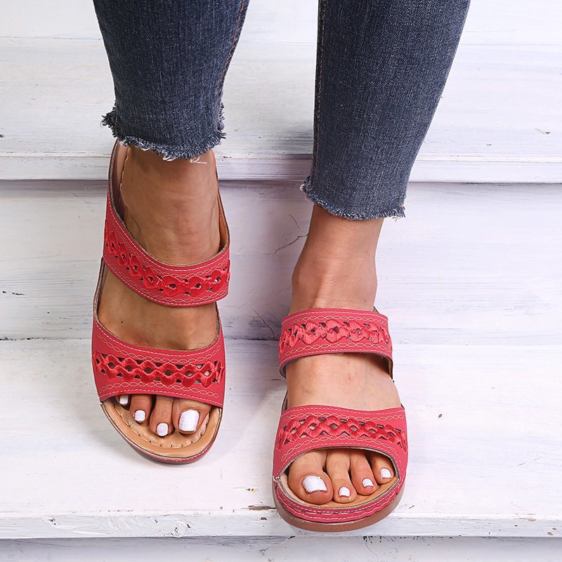 ビスケットの厚い底のサンダルの女性の夏の2023新型のファッションのボヘミアンのローマの靴の柔らかい底の外は百合のカジュアルシューズを着ます。