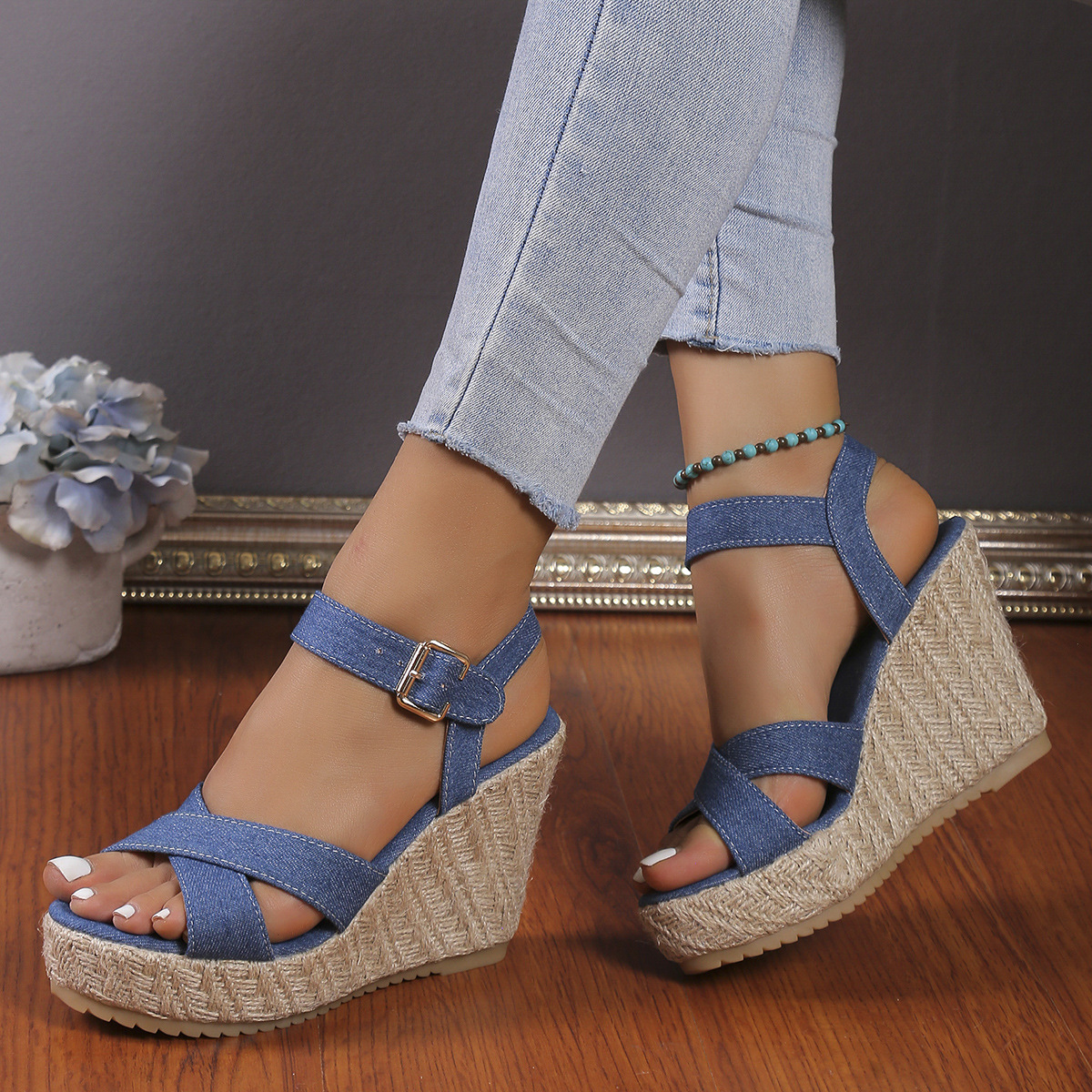 2023夏の新型の坂とサンダルのハイヒールの防水台の松餅の厚い底の女性靴のファッションの復古の夏のハイヒール