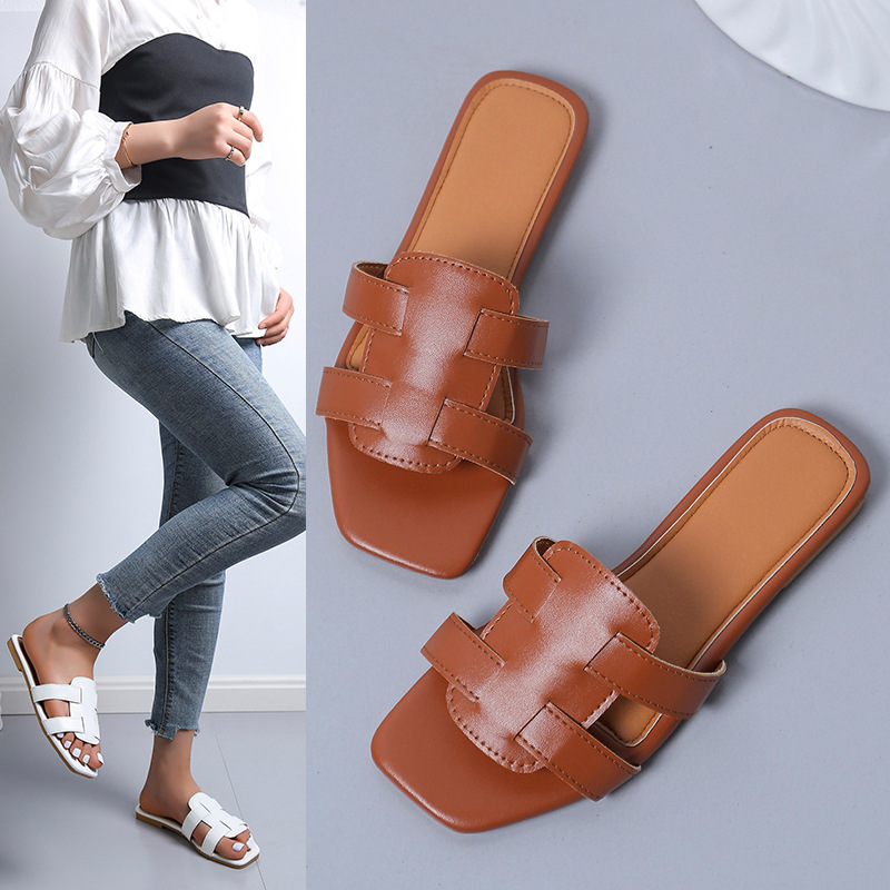 2023夏の新型の角頭の平底に色を合わせたビーチサンダルの女性が国境を越えた対外貿易の大きいサイズの涼しいカジュアルな女性