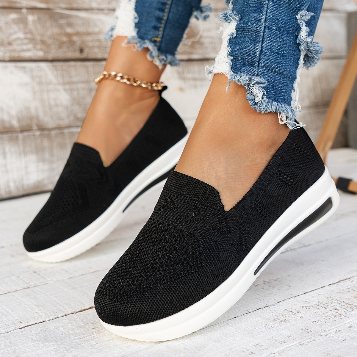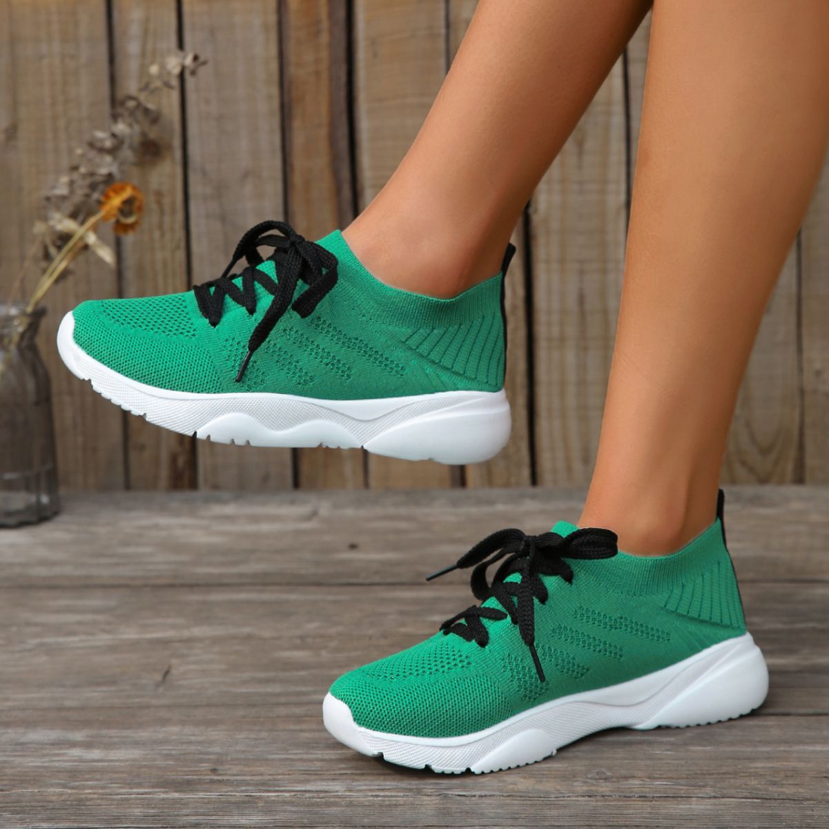 2023春夏新作ニット通気性ソフト底飛織レディース平一足靴レディース靴丸首マザーズシューズ
