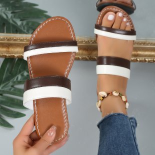 2023外国貿易の大きいサイズの夏のカジュアルなレトロなカジュアルな靴のファッション的な縫製の靴の革のタイプの女性のスリッパ