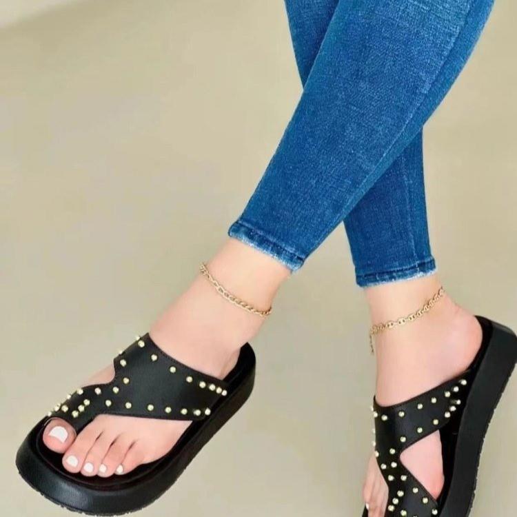 2023夏の新型対外貿易クロスボーダー大サイズ一字型スリッパ女性坂と厚い底サンダル刺繍女性サンダル