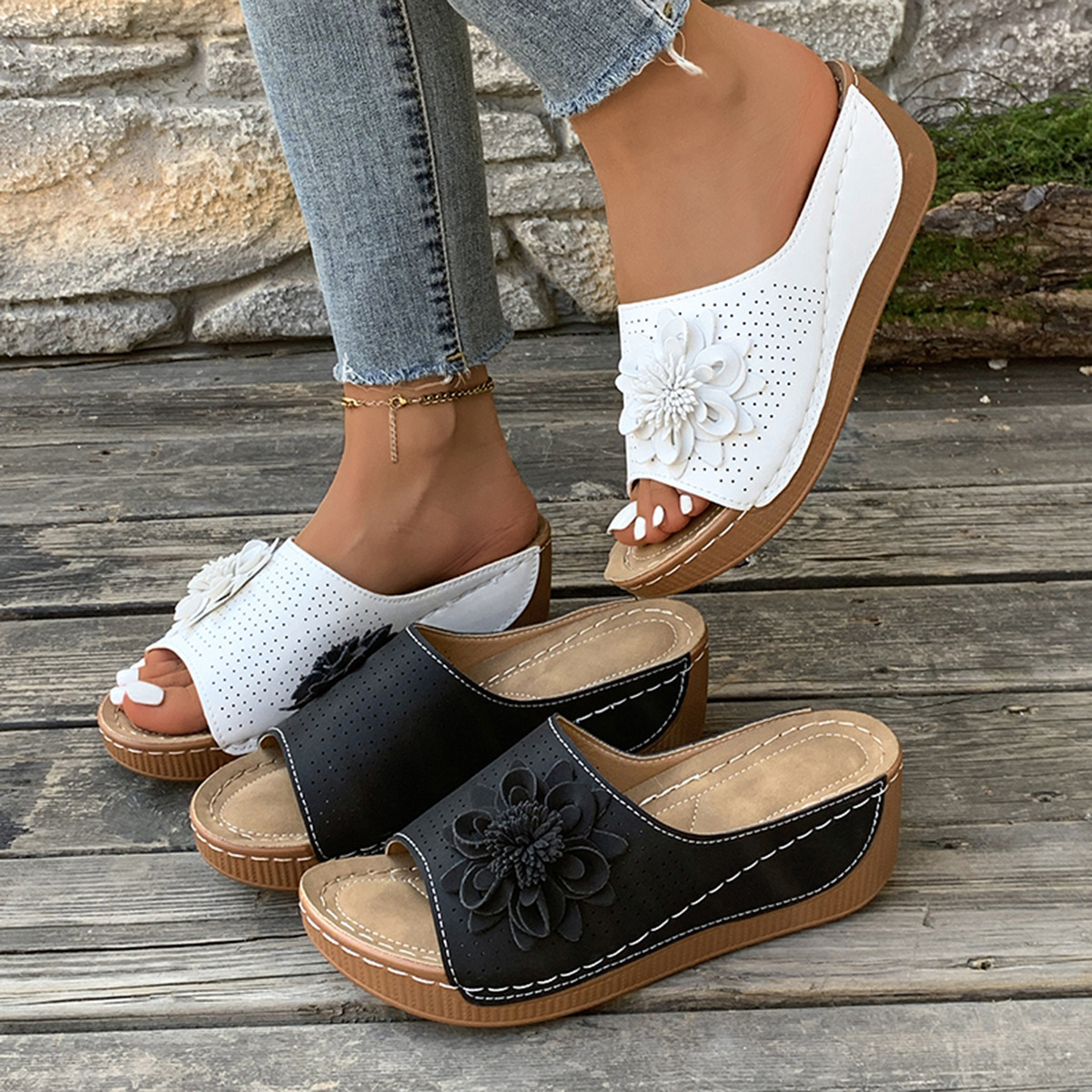2025夏の対外貿易の新型の女性の厚い底のスリッパのクロスボーダーの大きいサイズの魚の口の花の厚い底のファッションのスリッパの女性