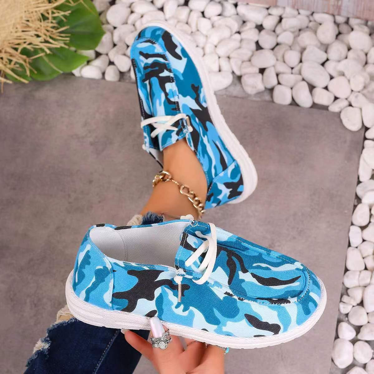 大きいサイズのクロスボーダーの外国貿易の欧米の2024春の新型のストラップの迷彩のキャンバスの女性の平底のカジュアルな靴の女性の布の靴