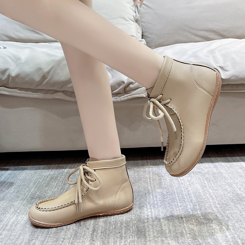 柔らかい底の大きいサイズのマーティンブーツの女性の2024新型の春と秋の平の靴のカジュアルなレトロな牛の筋肉の底の女性のショートブーツ