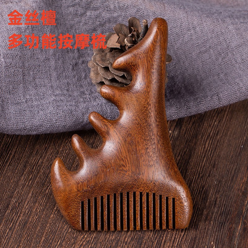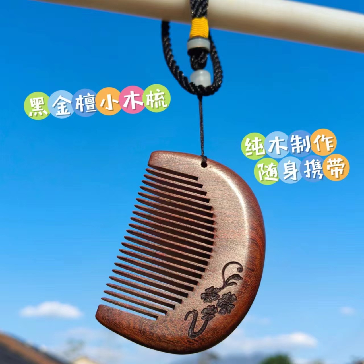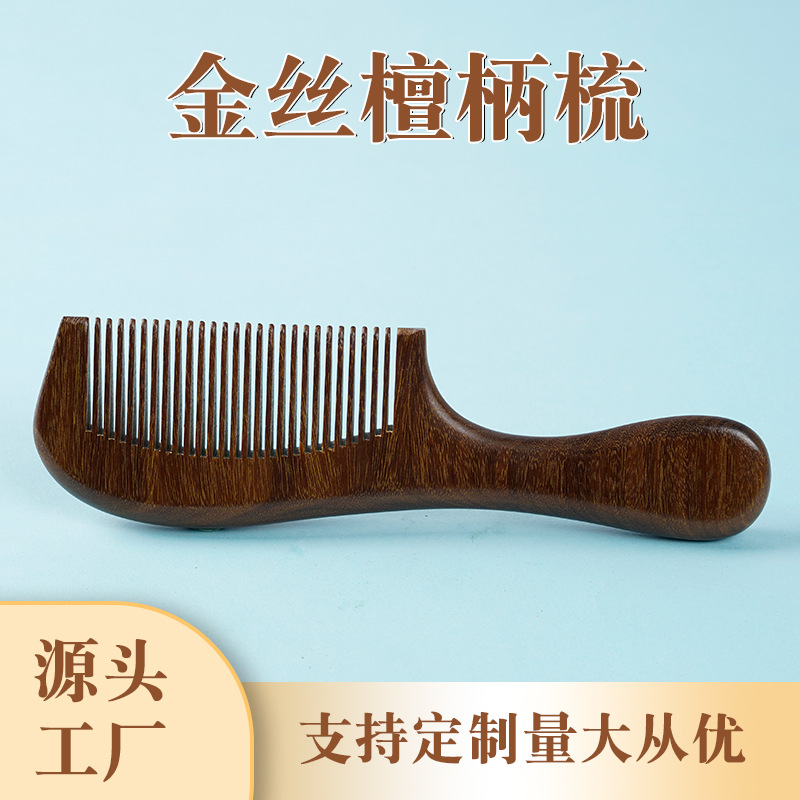 金糸檀木マッサージ木櫛卸売り家庭用両面彫刻花経絡緑檀香檀木櫛現物