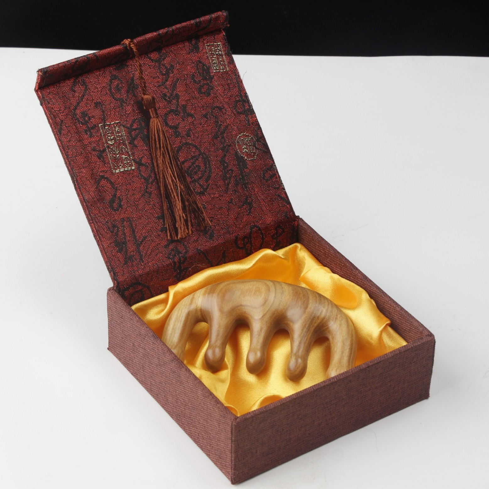経絡櫛檀木マッサージ櫛五本指ボールヘッド広歯櫛子頭部マッサージ養生木櫛卸売り