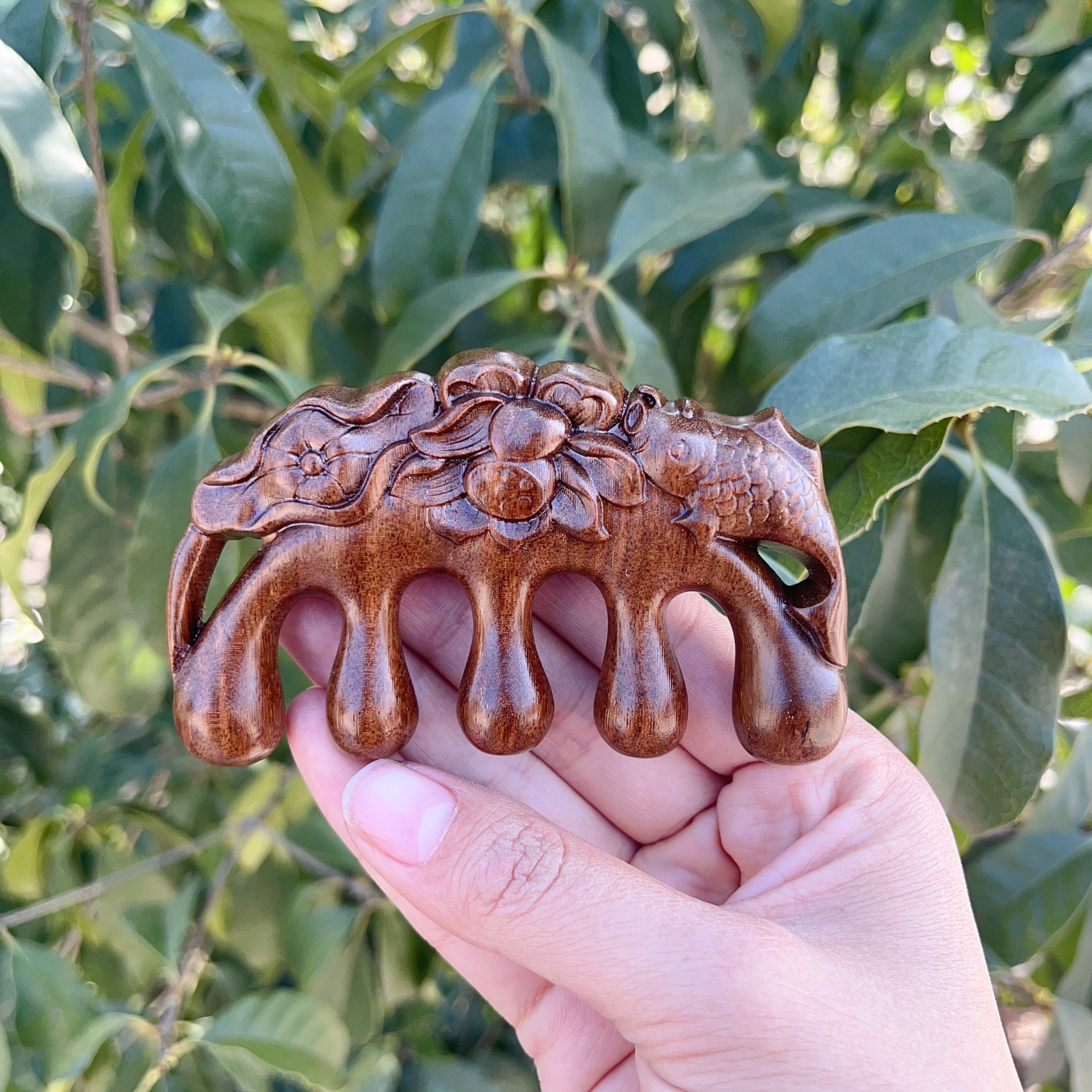 本物の檀木櫛緑檀マッサージ櫛イルカ経絡櫛頭部マッサージ