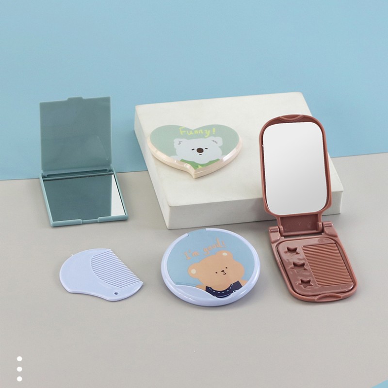 携帯型の美しい化粧品の折り畳みの鏡の櫛の漫画は手持ちの鏡の学生の寮のデスクトップの化粧の鏡の卸売りを持ちます。